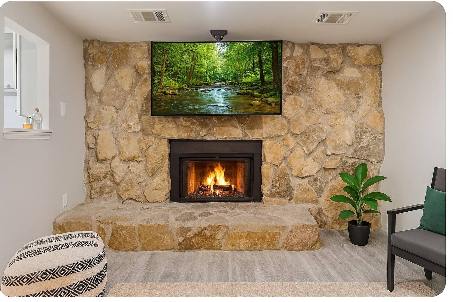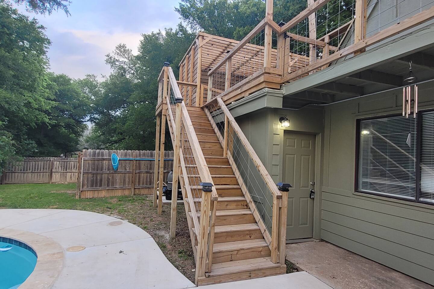 CAMERAS: We do have three exterior cameras actively recording for guest safety and to keep track of packages/deliveries and home maintenance. One is located on the exterior of the front sliding door and faces the yard and street. Another is located on the exterior of the garage and faces the driveway. The third is located on the exterior of our upper deck facing our back yard including the pool and spa. Our cameras record audio/visual when motion is detected and cease when motion ends. They are not actively monitored and are reviewed solely in emergencies, to track package deliveries, assess pool condition, verify home maintenance and for damage/incident assessment. They are also required by our insurance. Intentionally tampering with or disabling them can result in maintenance fines and/or cancelation of a reservation without refund. We value privacy and have no intention of monitoring guests; these details are Airbnb requirements. POOL/SPA: Enjoy the heated hot tub as part of your booking! While the pool remains open year-round, please note that it is not heated. Both the hot tub and pool undergo cleaning, chemical balancing and servicing at least once a week (usually Wednesdays or Thursdays.) The pool has a light and the switch is located on the wall near the pool equipment. Its checked for functionality at each weekly pool servicing. Please let us know if you need help locating it. Leaves and sediment from the surrounding greenery, dust and bugs may blow into the pool with breezy weather and can happen within minutes of the professional pool cleanings. Therefore, the presence of this type of debris does not indicate lack of maintenance. We provide a pool net for removing any leaves or debris that float into it as desired. BUGS: Insects are a natural aspect of daily life and can occasionally find their way into any home. Despite our efforts to treat the house for pests, it's possible for them to enter if doors or windows are left open, even for brief periods. We'd like to emphasize that our residence is situated on a spacious wooded lot, making it an attractive environment for bugs. We have a contract with Orkin Pest Control and they maintain our home year around. If any bugs get inside, please let me know and I will have them come out to inspect and do an extra treatment. They are usually available within 24 hours of any request. By booking our house, the guest acknowledges and agrees to the potential presence of bugs. NIGHTLY RATE/VALUE: The additional expenses associated with operating, maintaining, insuring and cleaning the pool and hot tub are reflected in our nightly rates, which may vary depending on the season. We have implemented a lower base rate for groups of up to 10 people in order to make it more affordable for couples, smaller families and friend groups. For reservations of over 10 people, we charge $40 per person per night to cover the additional expenses associated with bigger groups. CLEANING/PHOTOS: Your cleaning fee goes directly to a local, professional housekeeping company. Before each stay, they clean, stock and prepare our home for the next guest. As part of their process, they take before and after pictures, documenting the cleanliness and condition of the home. This practice is for our safety and yours, ensuring a high standard of cleanliness and providing a reference point for any unforeseen issues. Your comfort and satisfaction are our top priorities. SATISFACTION: We ask that you take the first hour after check-in to thoroughly inspect our home and inform us promptly if you encounter any issues or have any concerns related to your booking. It is important to communicate any dissatisfaction during this initial hour in order for us to best address any concerns. We genuinely aim to address and resolve any issues you may have, and we appreciate your cooperation in providing us with the opportunity to do so. Your courtesy in timely communication will greatly assist us in ensuring your satisfaction with your stay. Please don't wait until after your reservation to inform us of issues that we could've easily addressed. WEEKLY MAINTENANCE/POOL/YARD: Our maintenance team comes weekly to care for the pool, hot tub and yard and garbage. This usually occurs on Wednesdays or Thursdays, but can vary depending on weather, holidays, scheduling or other factors. They typically arrive between 9 and 11 AM and should take no longer than 2 hours. They will only need access to the back yard through the gate.