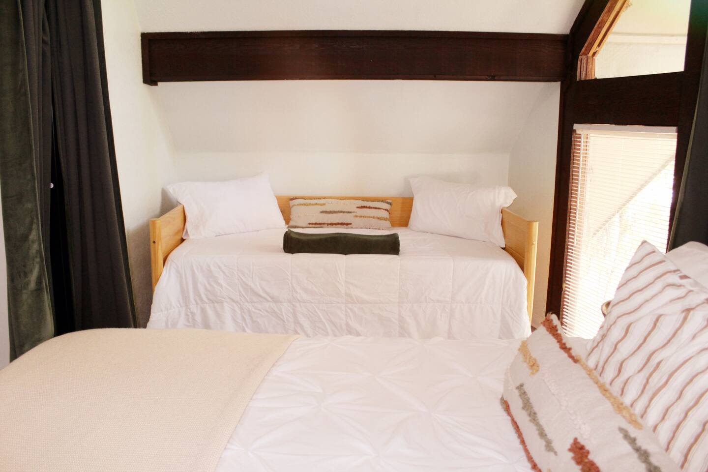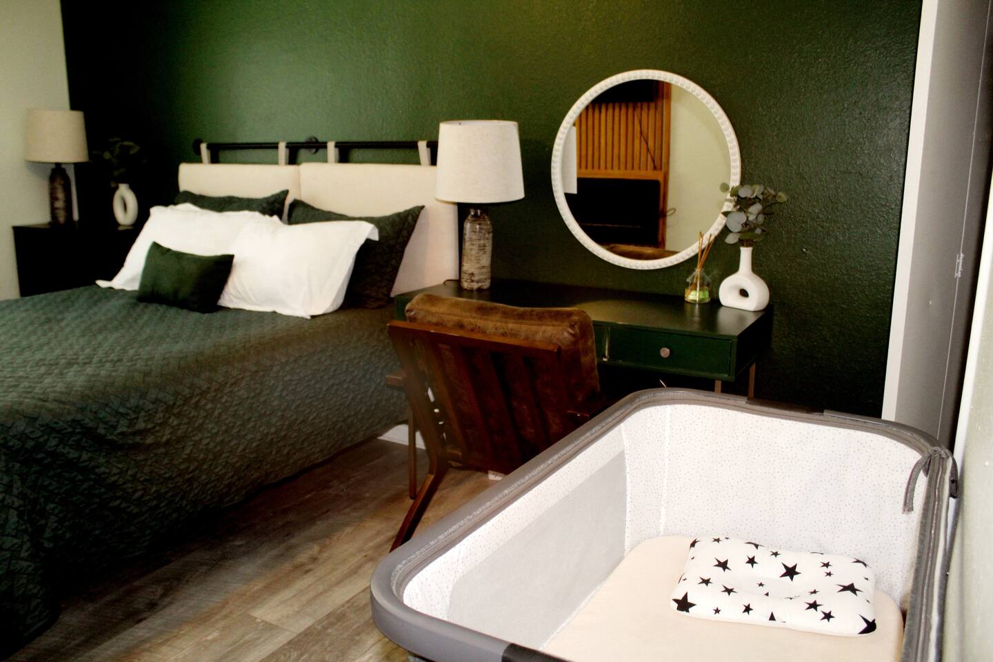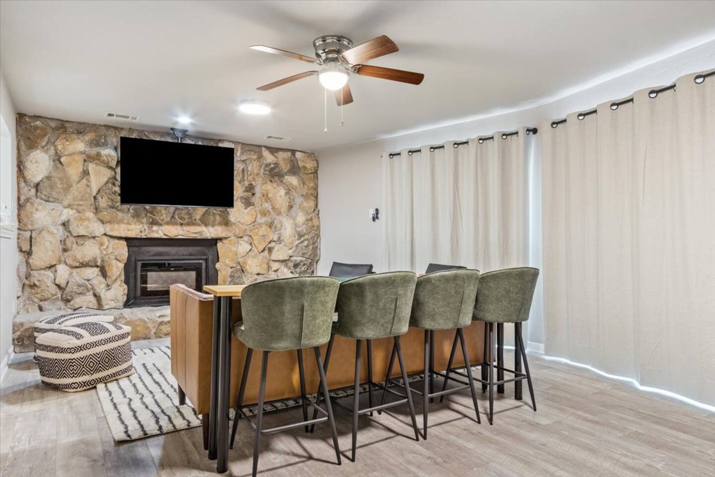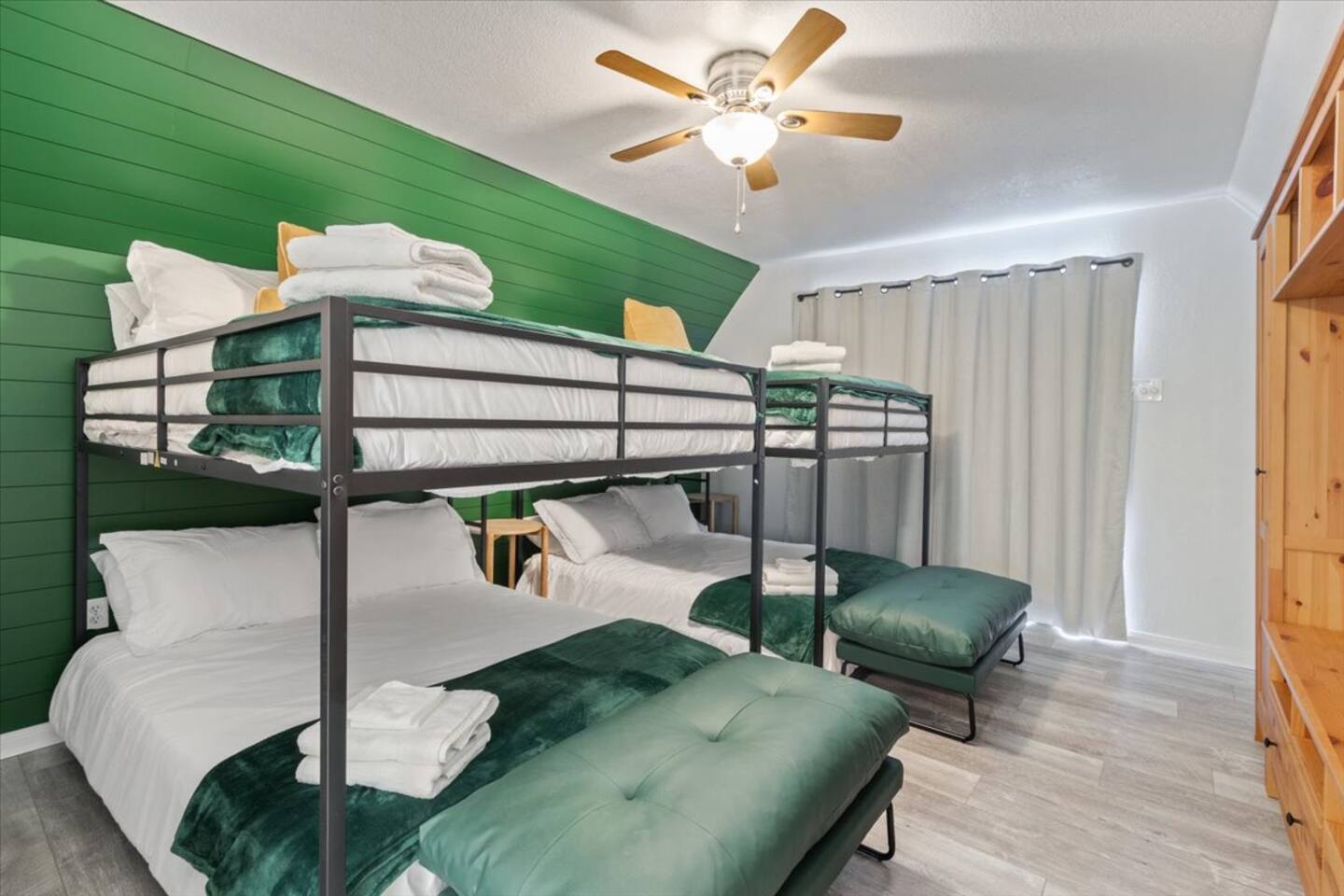 We love our home and hope you do too. It was built in 1983 and has been around for so many memories! Please know that we take a lot of pride in keeping our home an inviting place for guests. It is not new or perfect, but it is loved and we'd love the opportunity to share it with you! Living Room: Here you will find a couch, two chairs, a four seater bar top, 55in Roku TV and a fireplace w/electric insert. You will find a welcome table with a welcome binder. We'd love it if you'd sign our guest book and put a pin on the map to show where you're visiting from! Kitchen: Stocked 1983 kitchen with all the essentials for cooking and dining. The appliances are new! Everything functions, but the cabinets are not brand new. Dining Room: The dining room has a farm style table with two benches on each side. This table will comfortably seat 5 - 7 people. Bedroom One: This bedroom is located Downstairs off the living room hallway. It has a King size bed, two night stands, two lamps, a vanity/office desk, full length mirror, room darkening curtains, 55in Roku Tv, and a private electric fireplace. Bedroom Two: This bedroom is located Downstairs off the living room hallway. It has a Queen size bed, Li’l Pengyu Bedside Bassinet for Baby, dresser, vanity/office desk, two lamps, room darkening curtains, 55in Roku Tv, and a private electric fireplace. Bathroom One: This is between bedrooms one and two, has a bathtub/rain shower combo and a separate vanity area. Bedroom Three: This upstairs room has vaulted ceilings and large windows overlooking the backyard. Due to the uniqueness of this room we were unable to hang curtains; allowing the natural sunlight to flow in, in the mornings! We got creative with this room and decided on a Queen canopy bed allowing us to provide room darkening curtains to pull shut all around the bed. This room also features; a twin/twin day bed, 55in Roku Tv, private fireplace and bedside tables. Bedroom Four: This upstairs bedroom has two sets of full/full bunkbeds (these beds are suitable for adults, couples, and kids) a 55" Roku Tv, and cabinet with board games. This room has a private patio leading out to the second story deck. For this room we recommend keeping the room darkening curtains closed for temperature control. Bathroom Two: This upstairs bathroom is inside bedroom four. It has a jetted bathtub, rain shower, two sinks and a large mirror. Laundry Room: Here you'll find the stackable washer and dryer, iron, ironing board, mop, and broom. Garage: Make the most of your time here with a game of ping pong or shuffleboard. Do note that this space isn't climate-controlled. If you desire a fresher atmosphere, don't hesitate to raise the garage door. Just be aware that this might invite some bugs inside. While we're perfectly fine with tidying up after your visit, don't be surprised if a few insects make their way in due to the open doors. Outside: We have a backyard BBQ grill, pool, hot tub and above garage deck with patio furniture and propane firepit. Our front yard is tree filled and pretty. Pool: The pool's shallow end is 3.5 feet and the deep end reaches 6 feet. It remains accessible throughout the year, but it's important to be aware that it isn't heated (that's where the hot tub comes in!) A pool maintenance company takes care of cleaning and servicing the pool on a weekly basis. Please take note: Occasionally, leaves and insects may find their way into the pool due to its outdoor location. This is a common occurrence and doesn't indicate a lack of maintenance or cleanliness; in fact, it can happen shortly after the pool company's visit. We provide a pool net for your convenience, allowing you to remove any debris as needed or desired. The host is not liable for any injury sustained on the property or around the pool. Please stay at least 10 feet away from the edge of the pool at all times when not getting in to swim. The concrete can be slippery when wet. Do not run on the concrete around the pool. For your safety it is not advised to drink alcohol near the pool. These warnings are required by Airbnb. Hot Tub: Our hot tub receives weekly cleaning and servicing. To ensure optimal temperature and prevent motor strain, please remember to keep the cover on when the hot tub is not in use. Do not turn the hot tub off. Your enjoyment and the longevity of our amenities are our priorities.