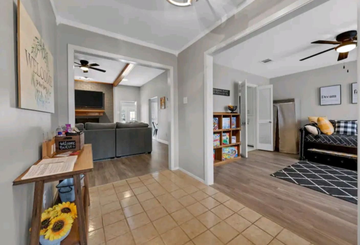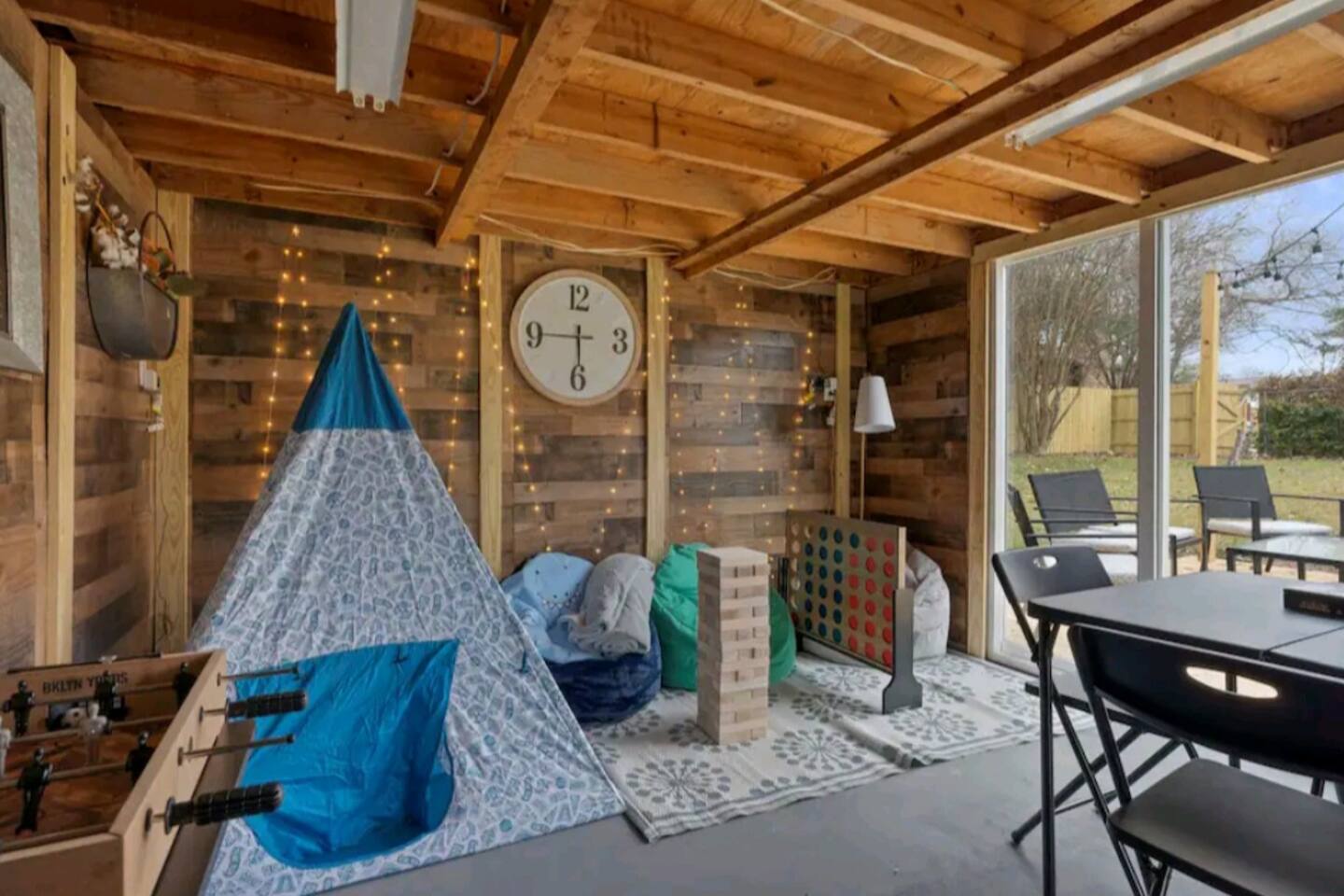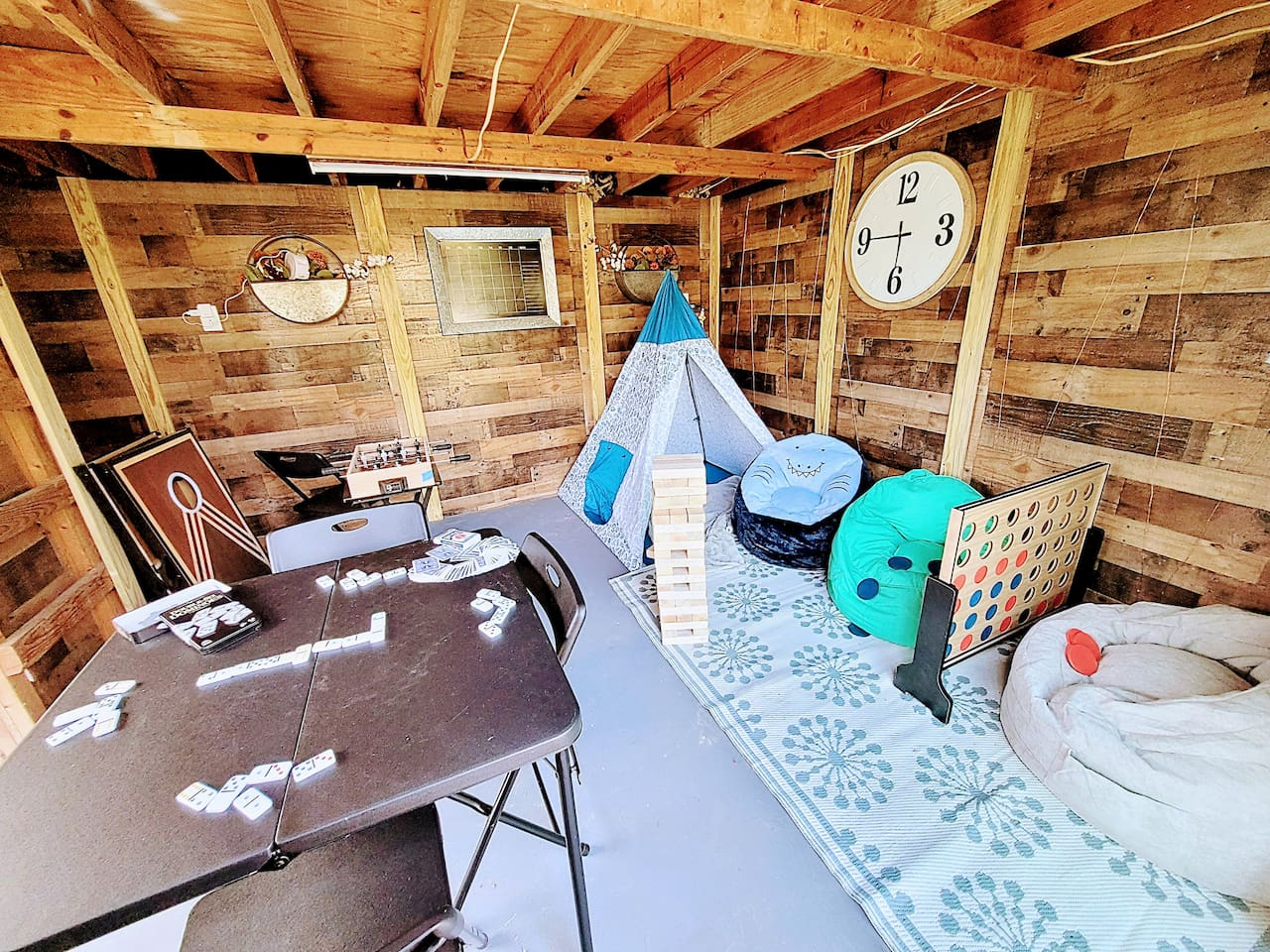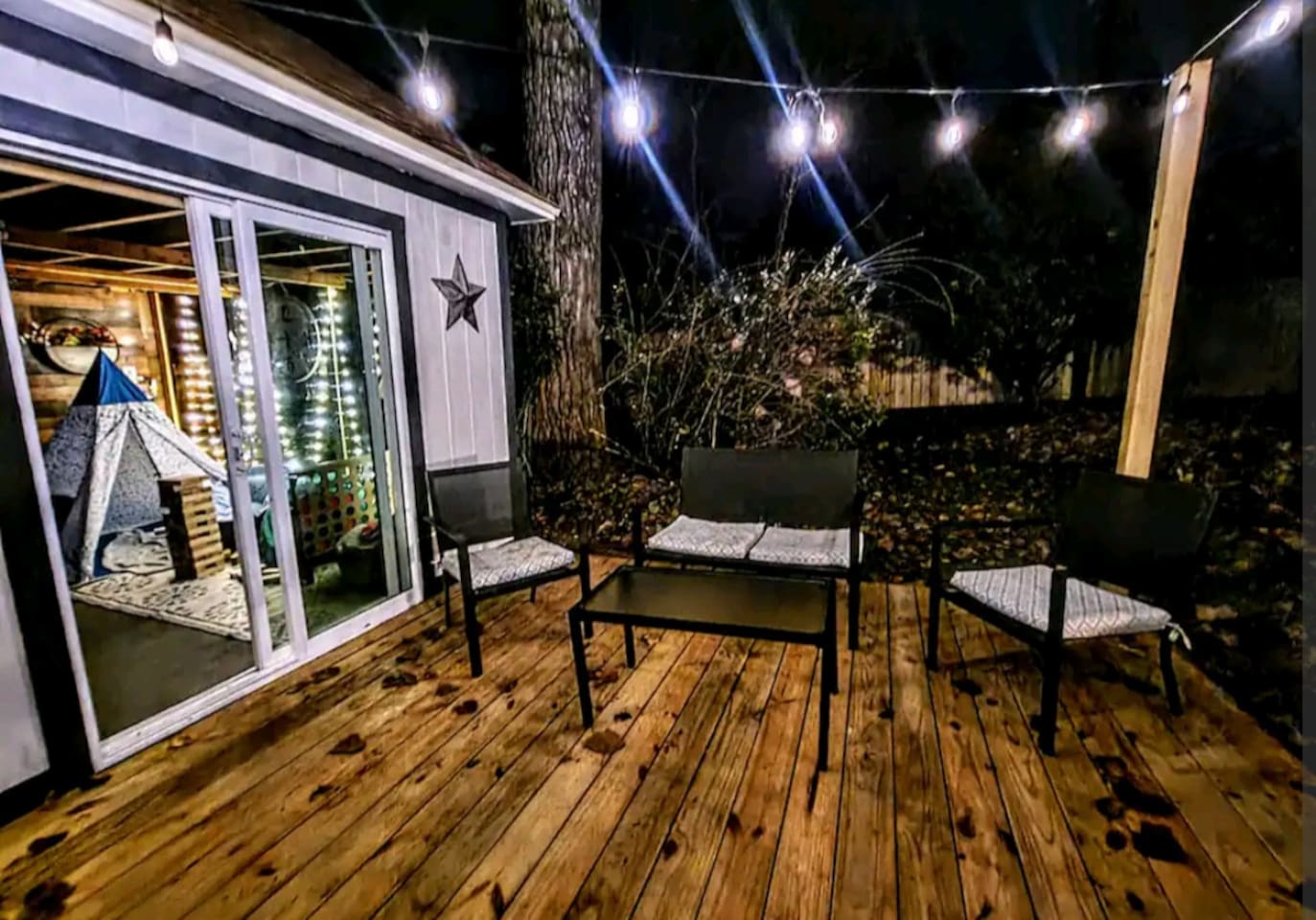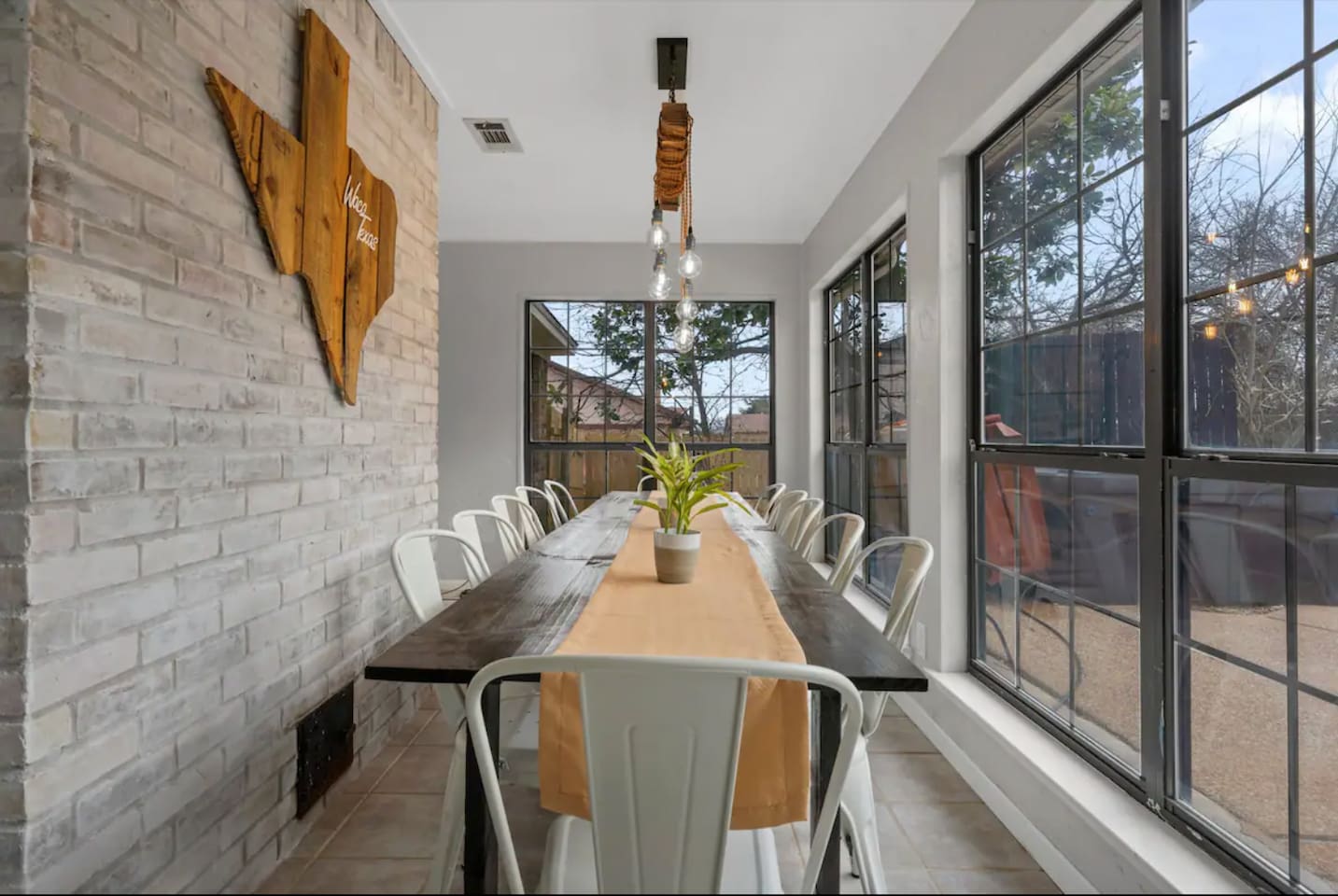 Welcome to Texas Sunshine Oasis! This single level brick house was built in 1983 and is on 1/2 acre in a quiet neighborhood. We loved it at first sight due to the sunroom and the greenery-filled back yard! It is not new or perfect, but many memories have been made here. Special features: - In ground pool (3.5 feet in the shallow end, 8.5 feet in the deep end) - Shed turned into playhouse just for fun. - Garage turned into game room for ping pong and poker. - Piano in the living room! - Fully stocked kitchen Bedrooms & Bed types: - 1st Bedroom: Two Queen beds - 2nd Bedroom: King bed - 3rd Bedroom: Two Twin beds and two Full sized beds (two twin/full bunkbeds) Bathrooms: - Full Bathroom: Attached to 1st bedroom. Has two vanities, two walk in closets, toilet and large shower. - Full Bathroom: Shared by bedrooms two and three, with a bathtub/shower combo. - 1/2 Bathroom: Toilet and sink (no shower or bathtub) Other Spaces: - 1st Living Room: Small desk, Board game shelf, cloth "closet," Trundle bed with two twin mattresses. - 2nd Living Room: Large couch, TV, Piano, Coffee Table, Decorative Fireplace (note - decorative only - not suitable for actual fires.) - Laundry Room: Washer and Dryer. - Garage: Ping Pong Table, Poker Table - Outdoor Shed: Playhouse