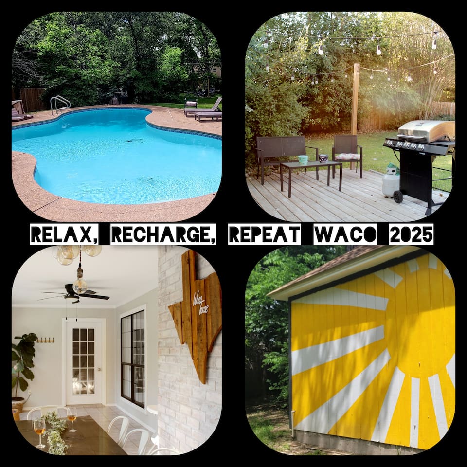 Welcome to the Texas Sunshine Oasis, our Waco city escape! Geared towards families and friends with space to work, relax, and rejuvenate inside and out. In a quiet neighborhood, but close to all things downtown. Big woodsy backyard with modern "Farmhouse-ish" interior. Baylor - 8 min Magnolia Market - 11 min Waco Convention Center - 12 min Lake Waco - 15 min Cameron Park Zoo - 15 min Waco Surf - 22 min Waco Regional Airport - 20 min Austin Airport - 1 hr 27 min Dallas Airport - 1 hr 45 min